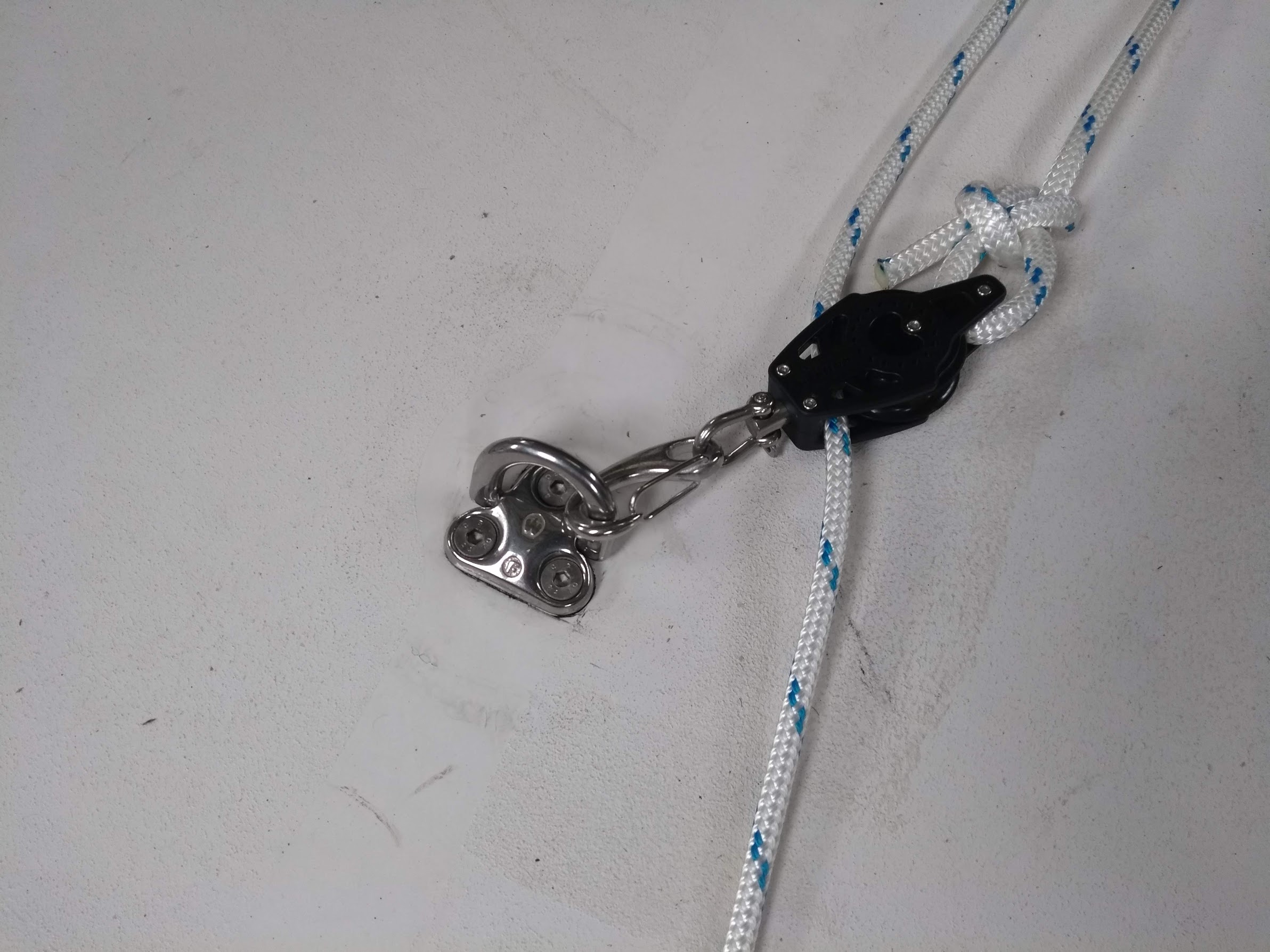 Een week voordat we te water gaan kom ik in de Te koop aangeboden hoek van het Zeilersforum een prachtige achterstagspanner tegen. Die stond nog niet eens genoteerd op het wensenlijstje. Had er al wel naar gekeken maar vond ze duur of lelijk (die met zo’n draaiwiel). Het zou wel de oplossing zijn voor de toch wel eens doorhangende voorstag én de klemlopende wantspanner van de achterstag die daardoor niet strakker kon. Nu de uitdaging om voor het zetten van de mast de achterstag in gekort te krijgen.